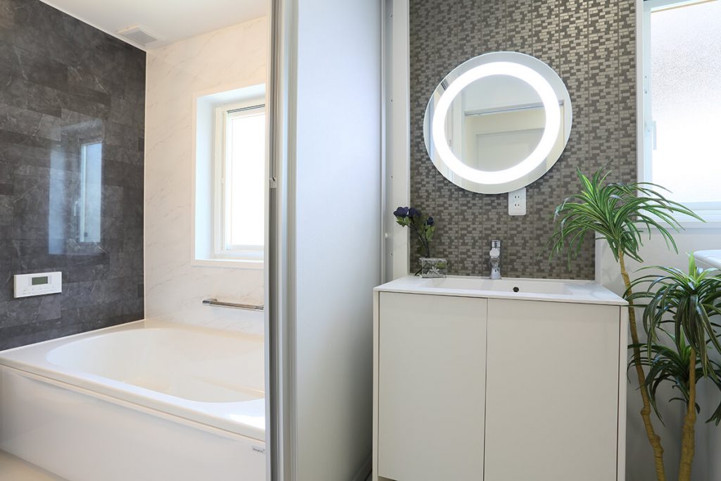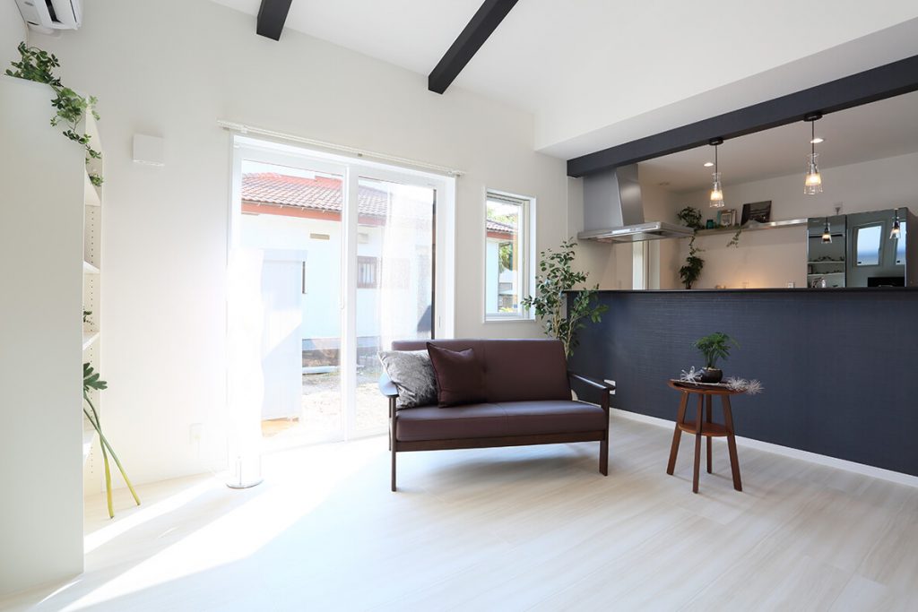 ネイビーと白の組み合わせがシャープ!外観だけでなく、室内もコントラストを活かしたモダンハウス。人気のウォークインシューズロークや2Fホールなど、余裕のある暮らし方を実現できます!