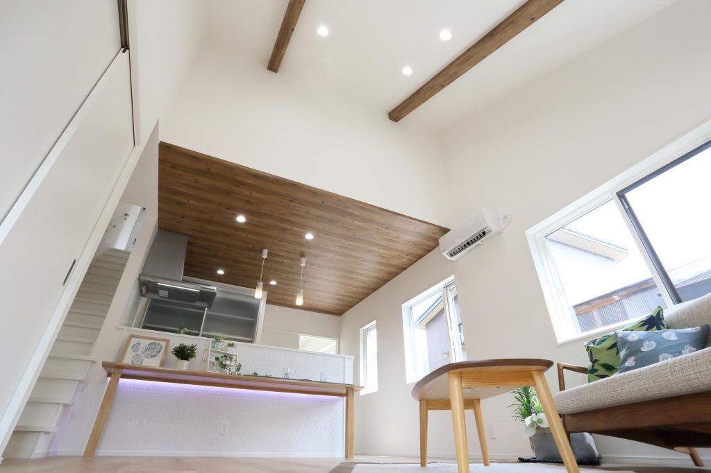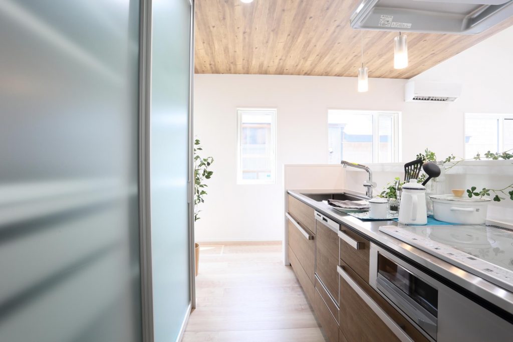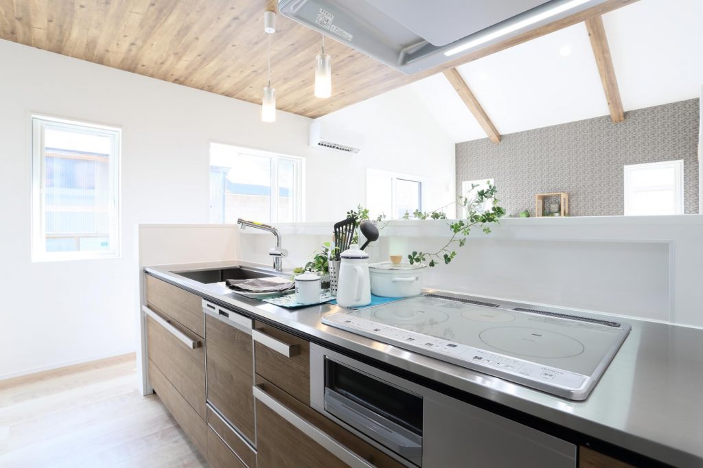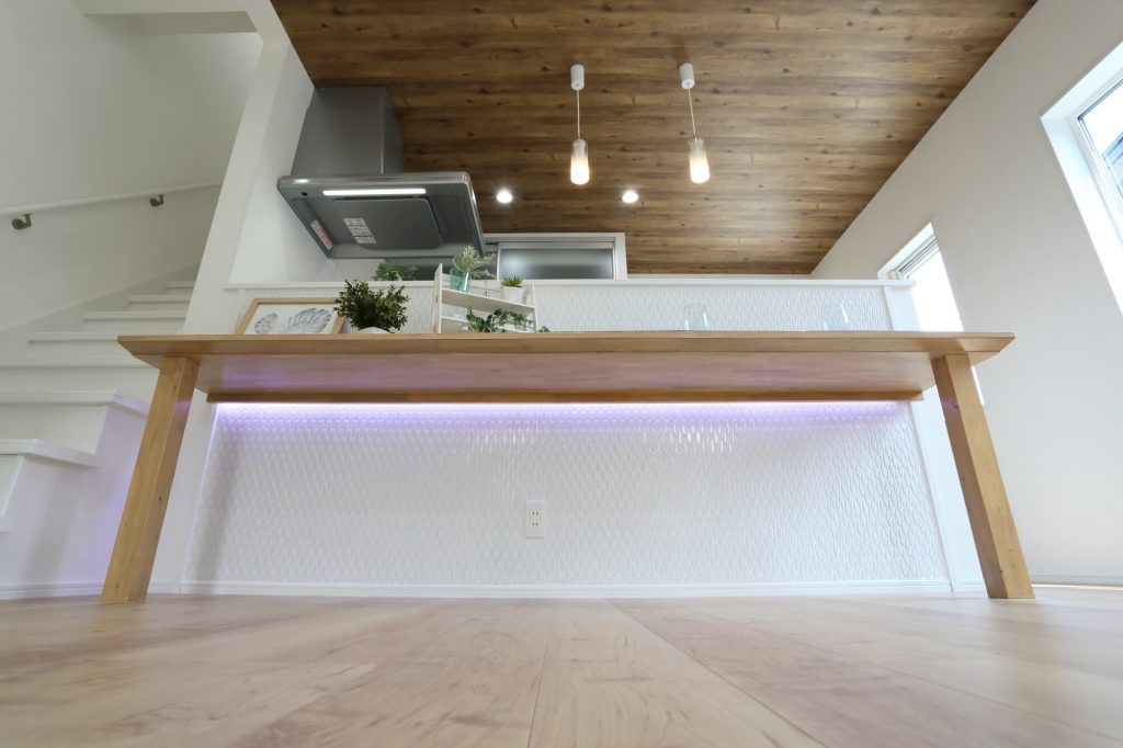 北秋田市,新築,キッチン,システムキッチン,リビング,ダイニング,カウンター,間接照明,阿仁
